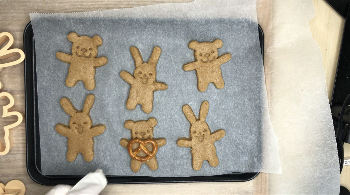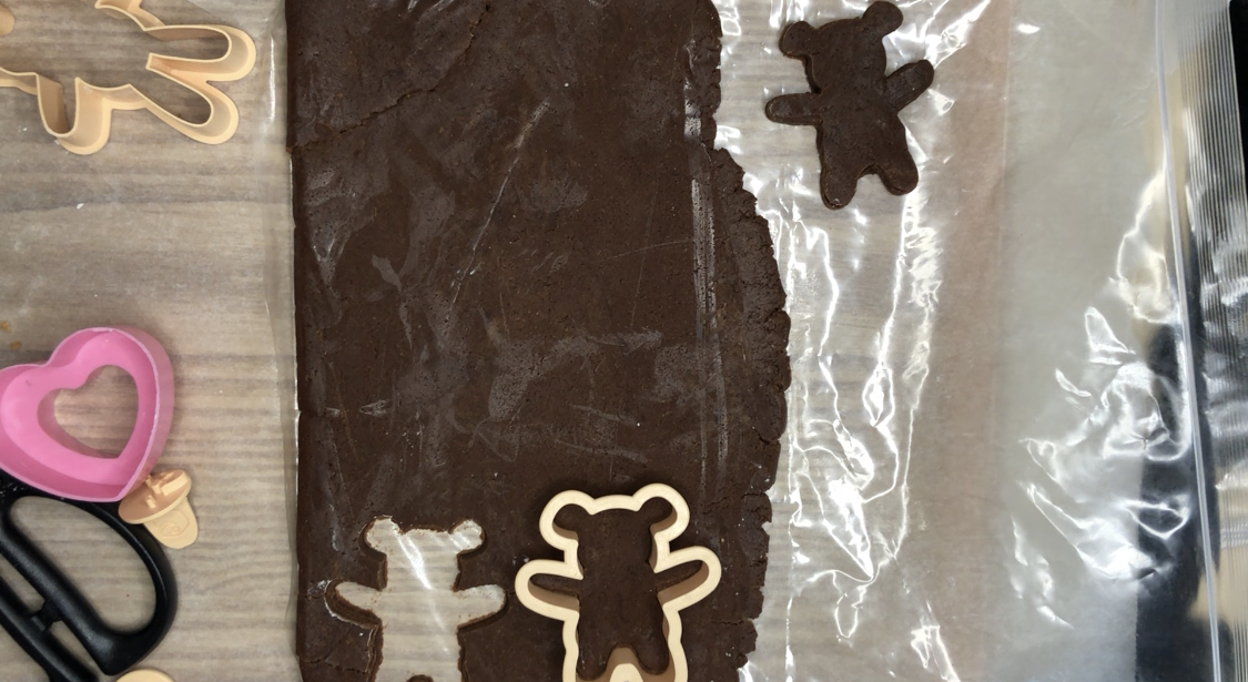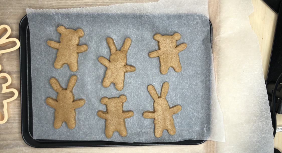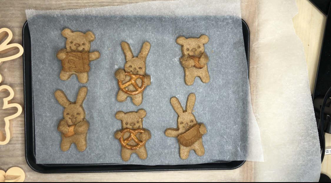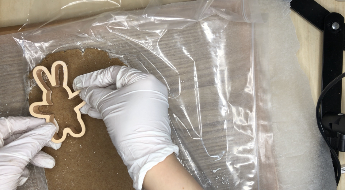 9. 꺼낸 반죽위에 곰돌이쿠키틀, 토끼쿠키틀을 눌러서 모양을 내줍니다.