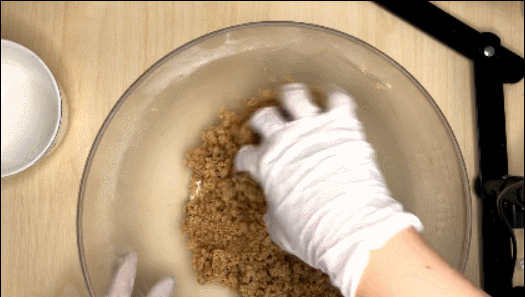 5. 어느정도 섞였으면 아몬드브리즈(or 우유)를 넣고 손으로 뭉쳐줍니다.