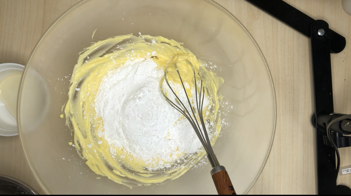 2. 슈가파우더와 소금을 넣고 잘 섞어줍니다.