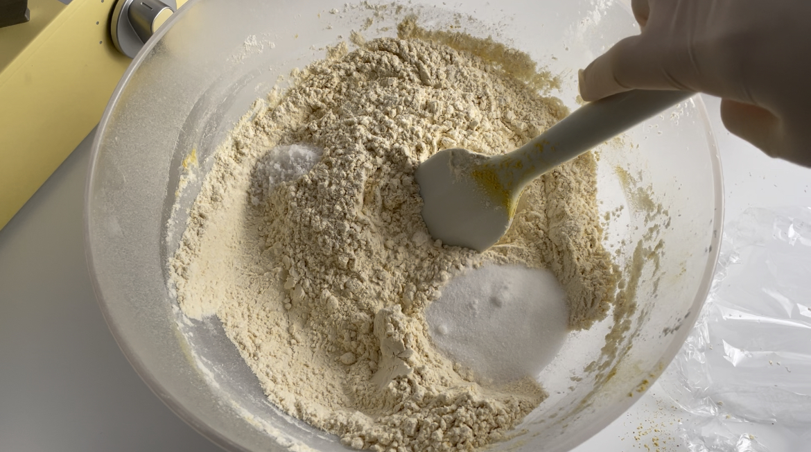 3. 소금, 설탕을 각각 넣고 가루랑 잘 섞어주세요.