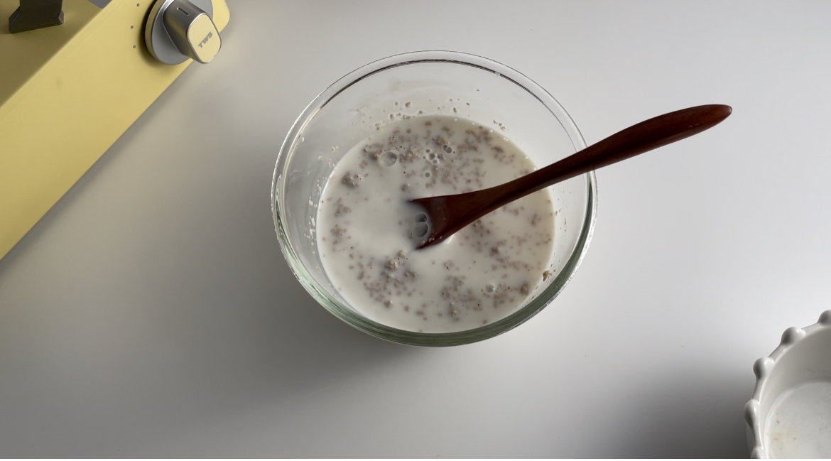 1. 먼저 따뜻한 우유에 이스트를 넣고 잘 섞어줍니다.