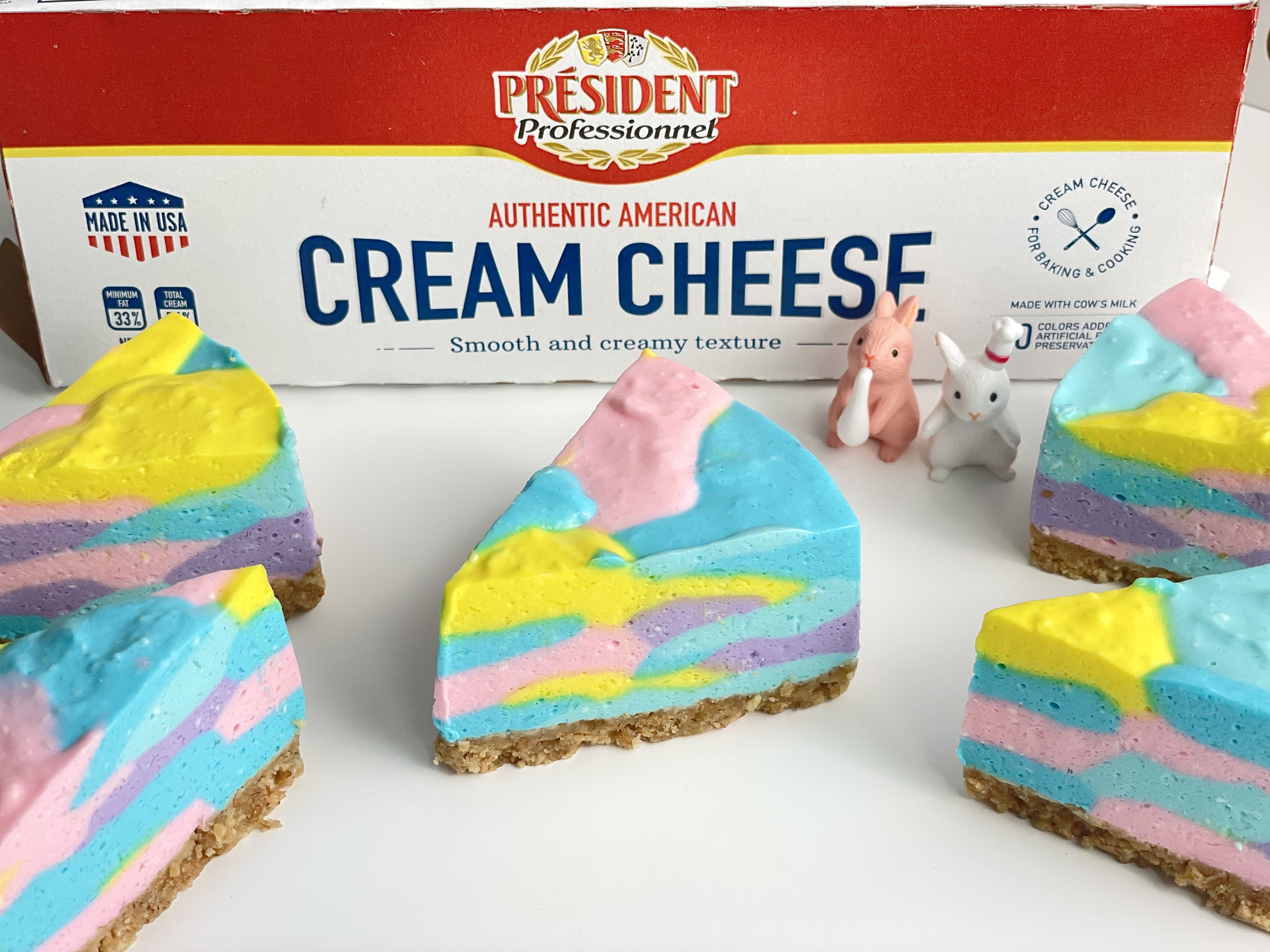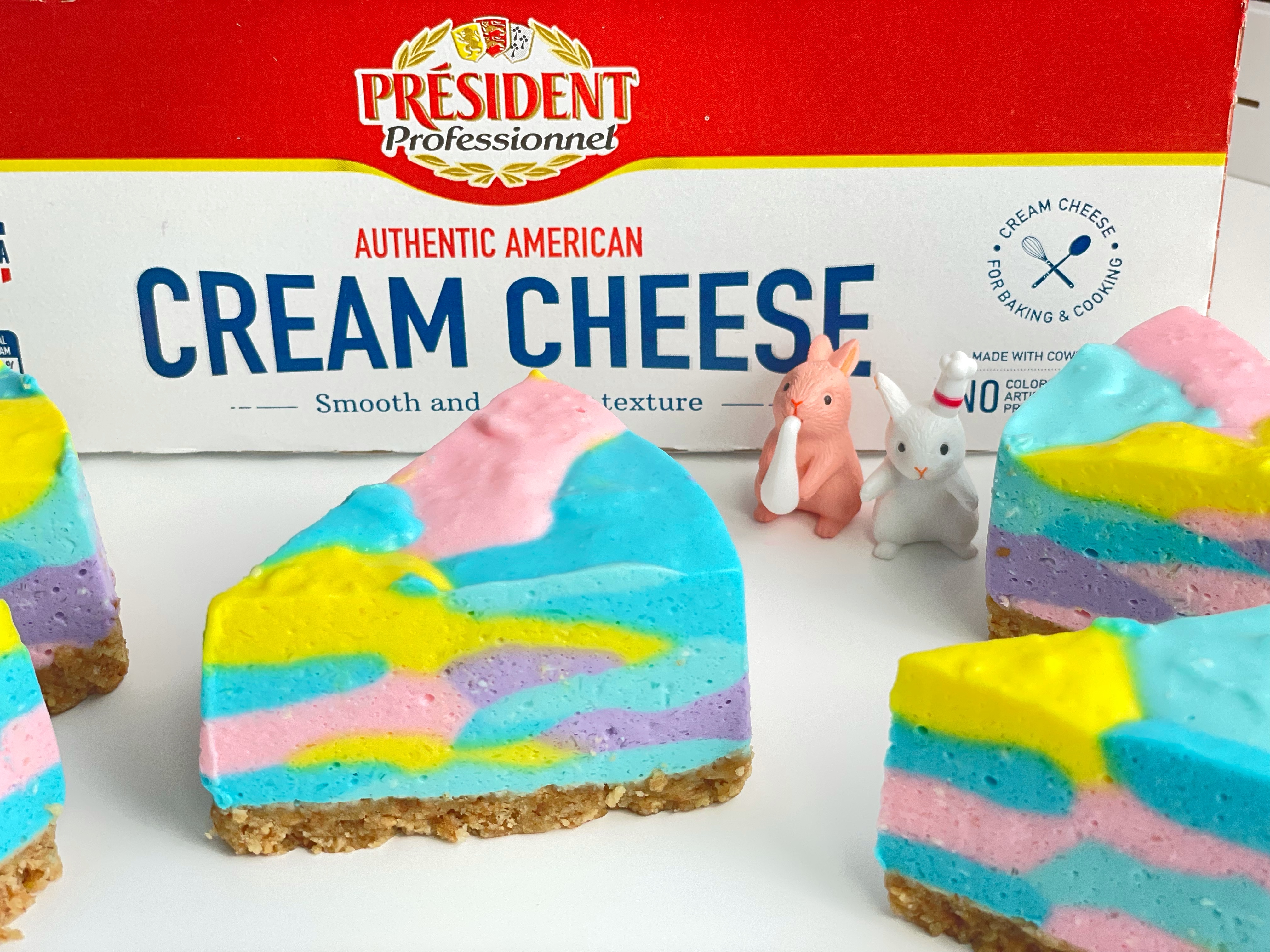 NO오븐 알록달록 무지개치즈케이크 만들기 (프레지덩 크림치즈)