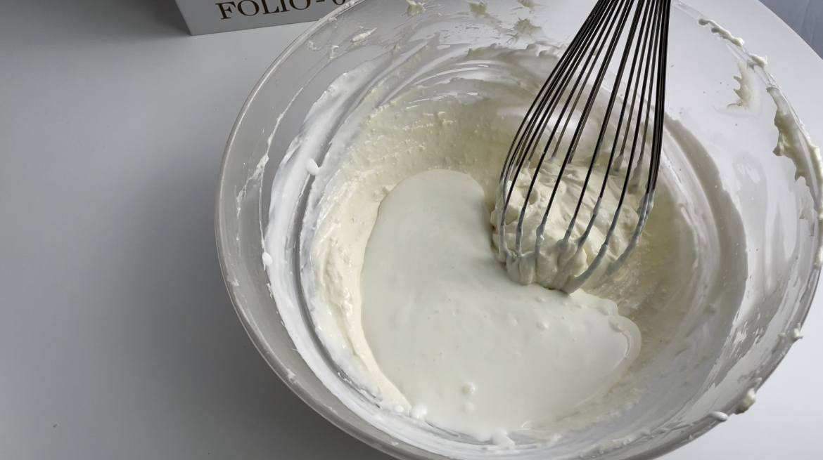 4. 요거트 + 생크림을 섞어줍니다.