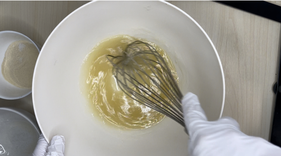 2. 설탕을 넣고 휘퍼로 잘 섞어줍니다.