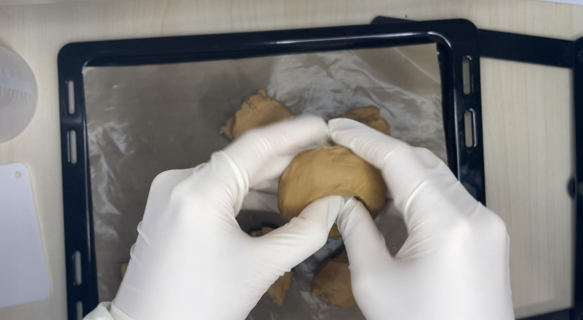 5. 11자를 그어가며 반죽을 뭉쳐주세요.