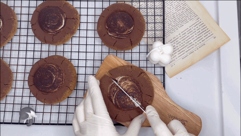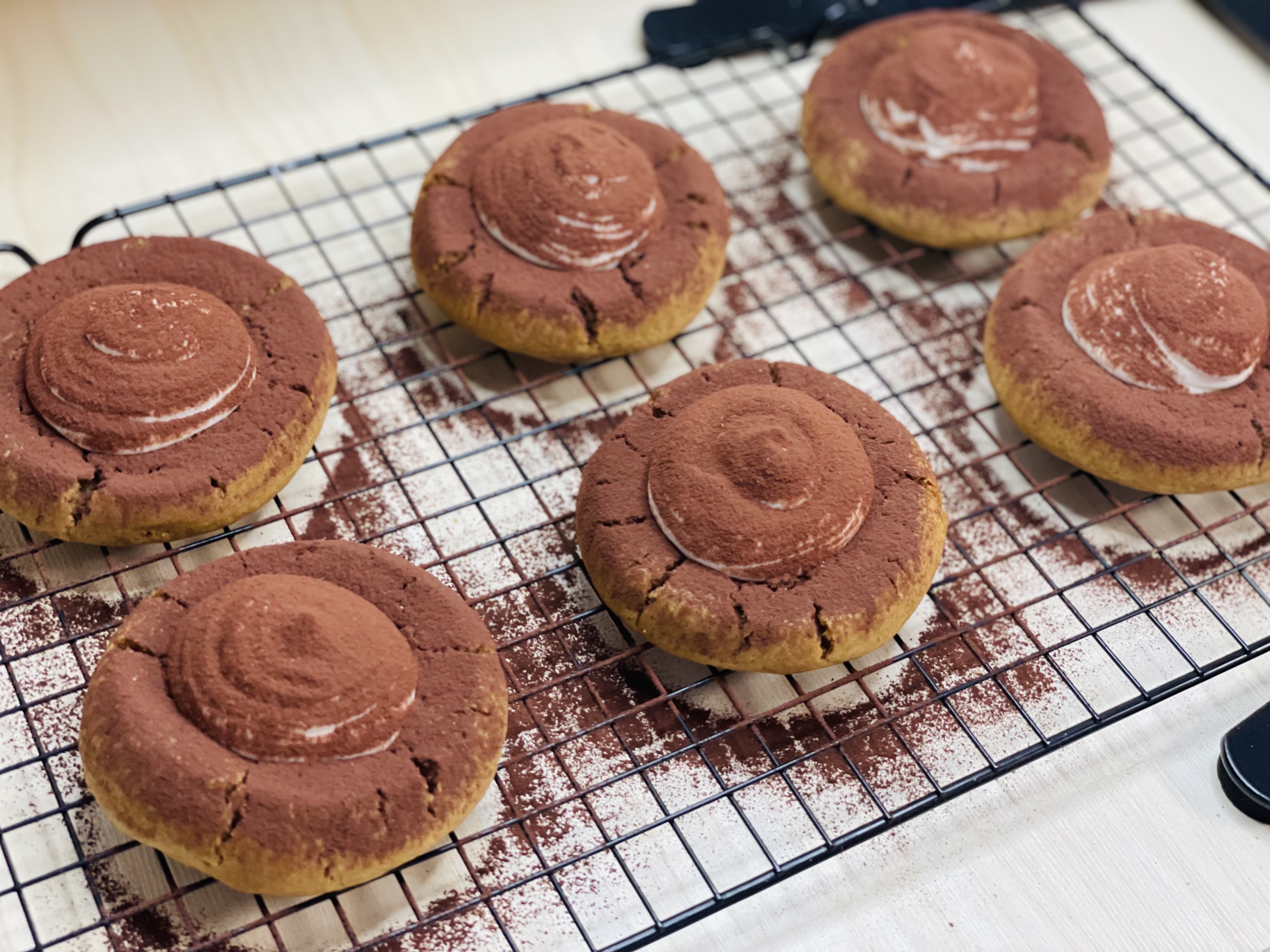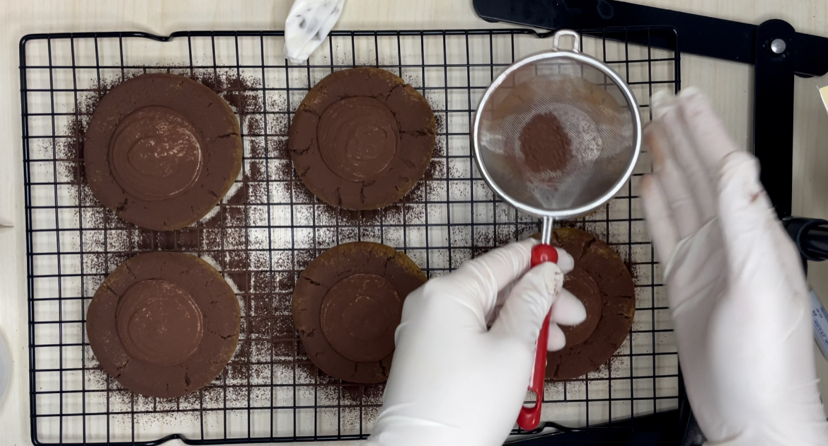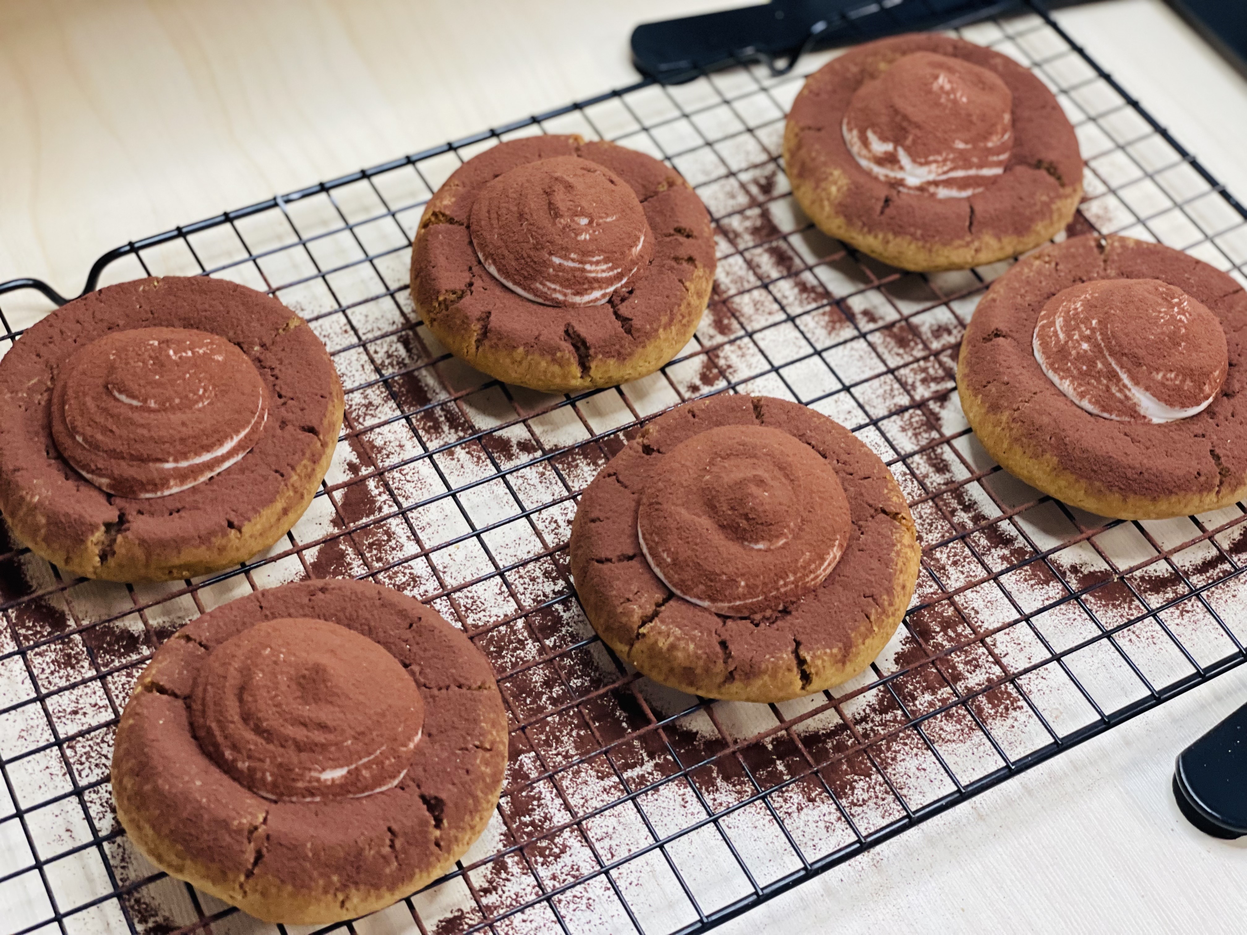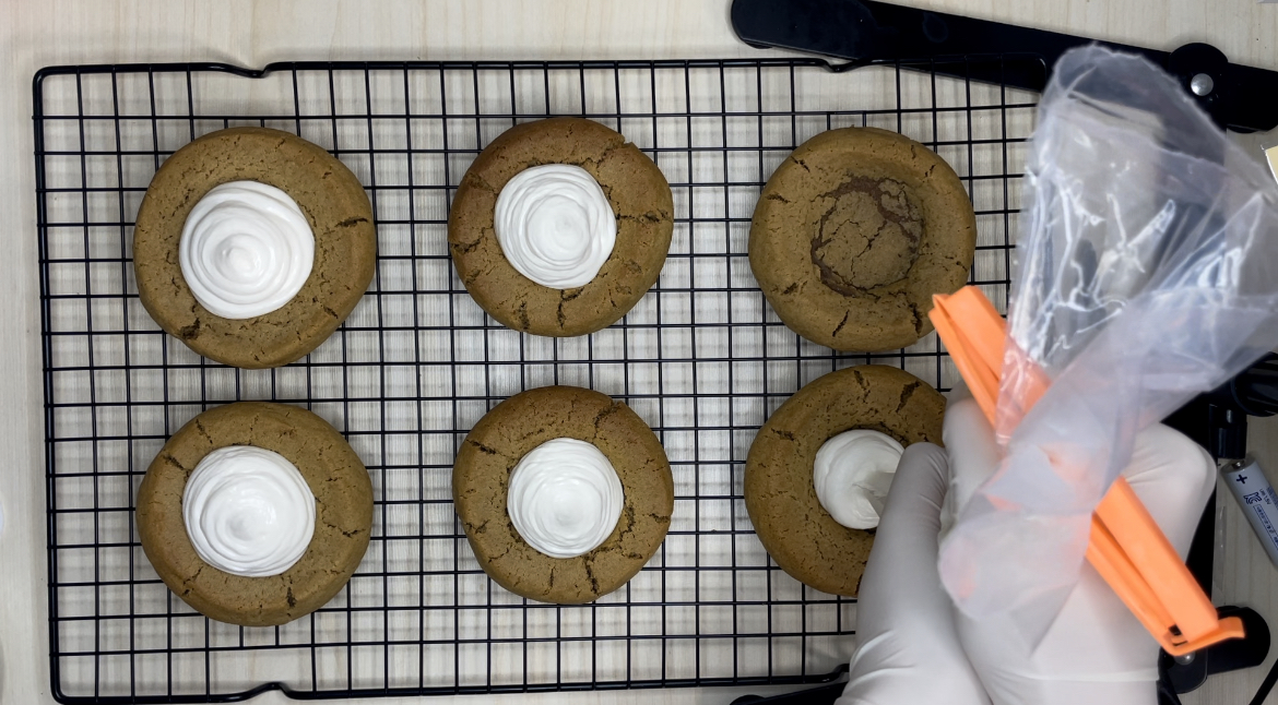 10. 쿠키를 식힘망에서 완전히 식힌 후에 가운데 마스카포네치즈필링을 짜주세요