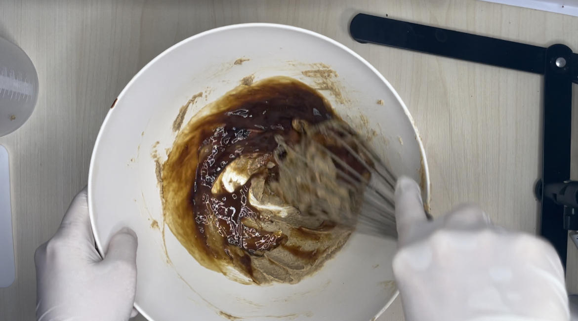 3. 실온계란과 바닐라익스트랙, 커피가루를 섞어서 넣고 분리되지 않게 섞어주세요.