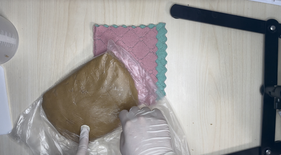 6. 완성된 반죽은 납작하게 펴서 비닐봉지에 싼 다음 냉장휴지 30분
