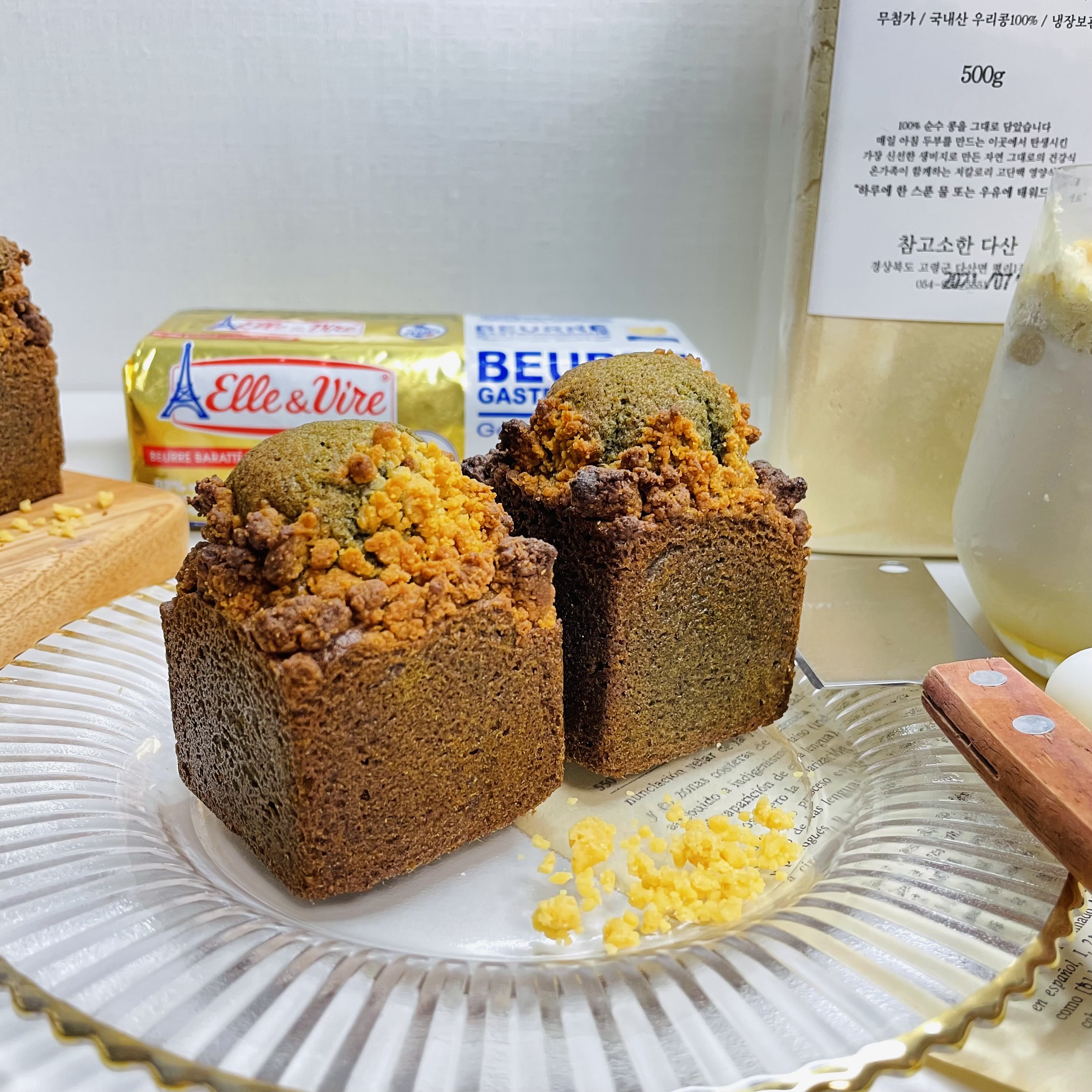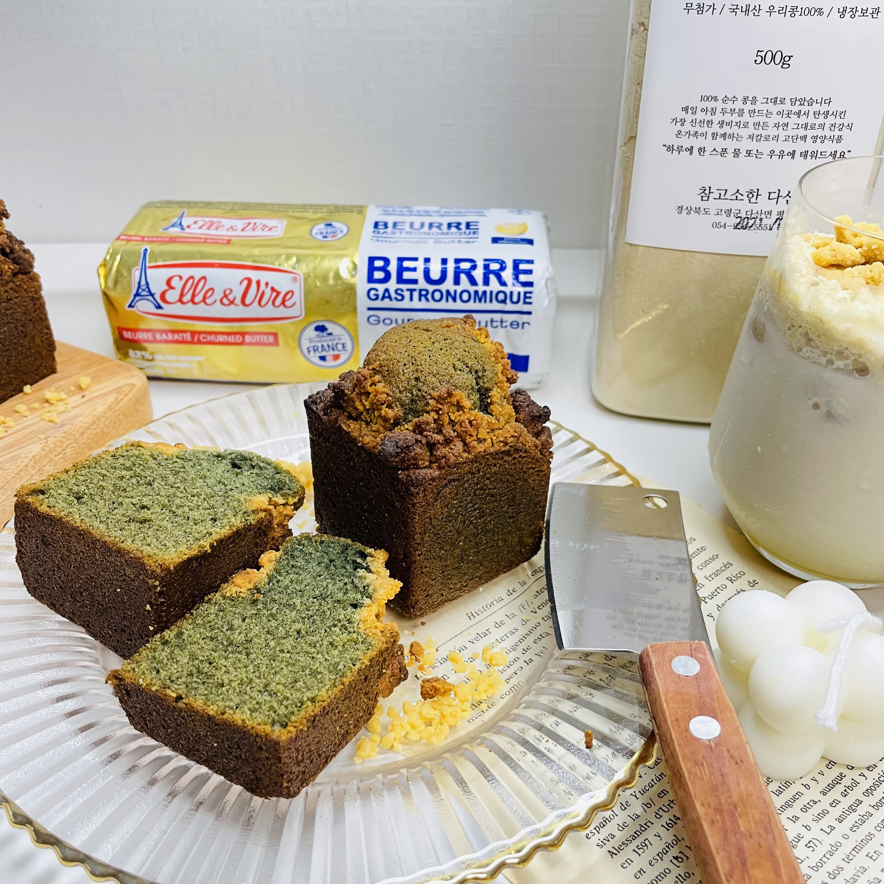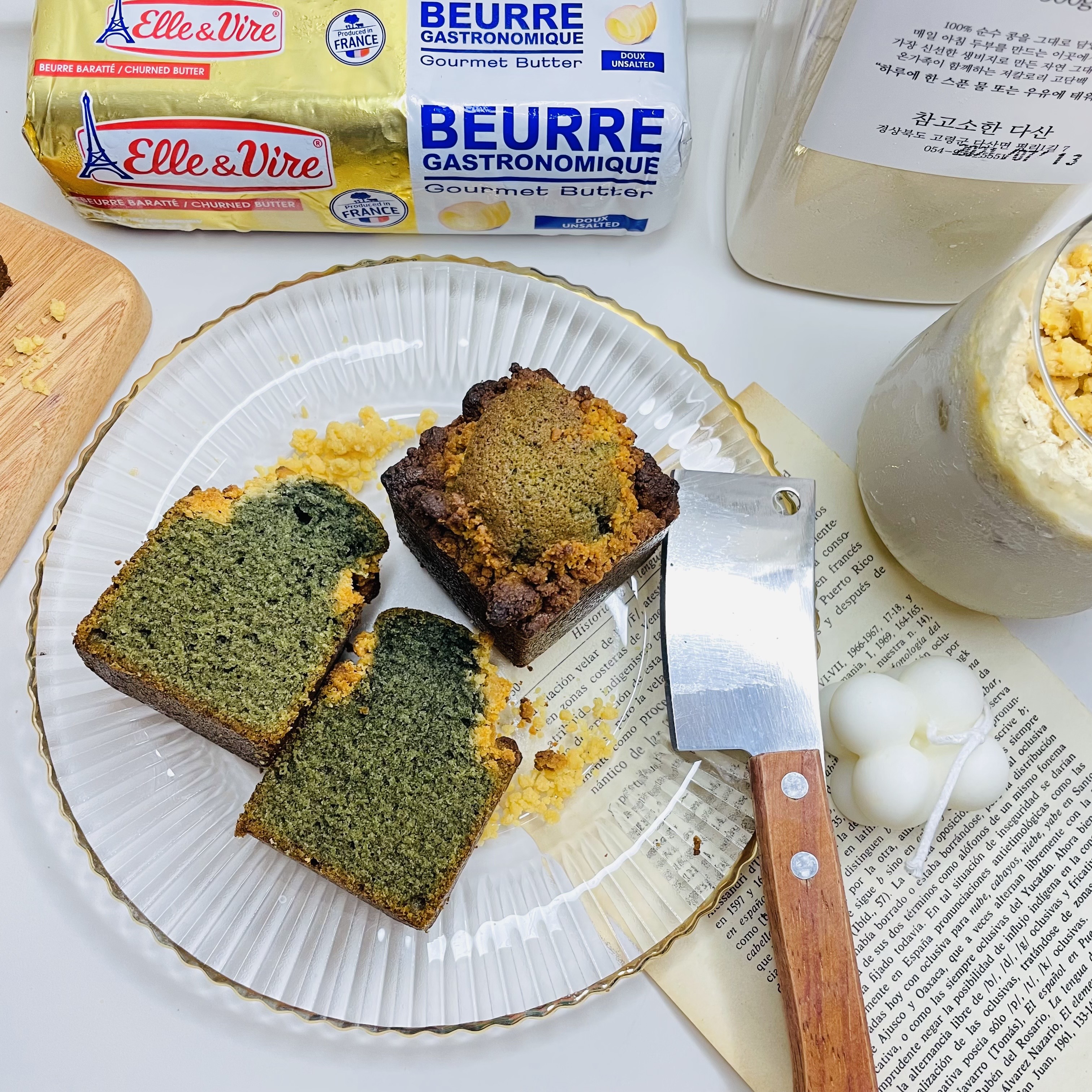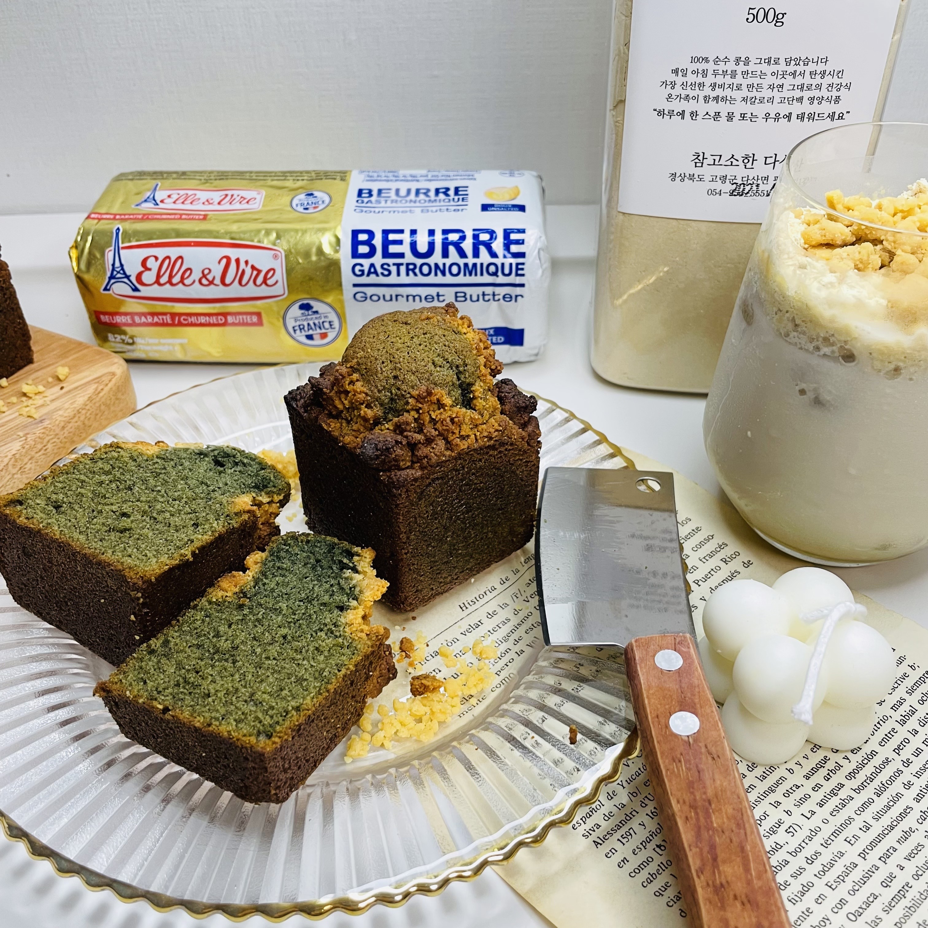 고소한 콩가루 크럼블 올린 쑥파운드케이크