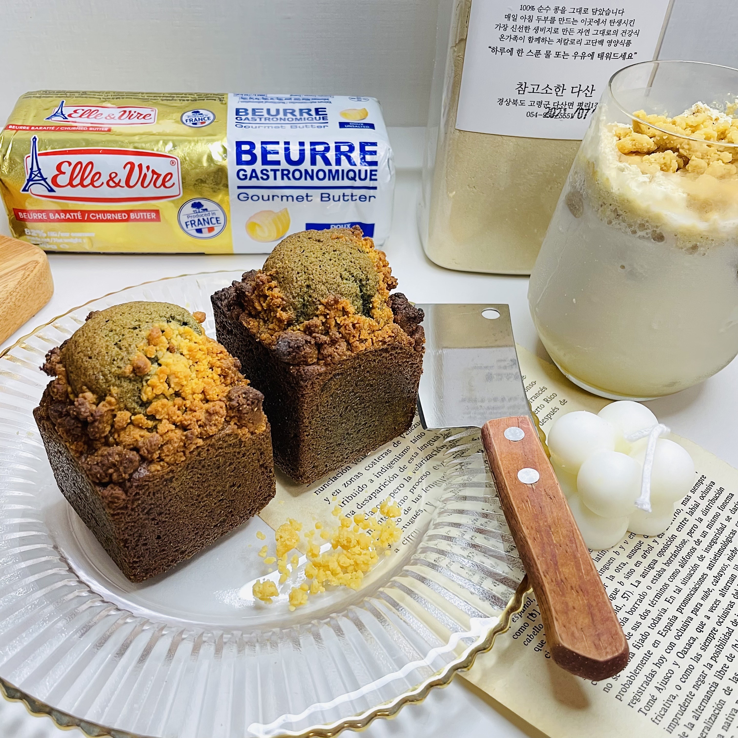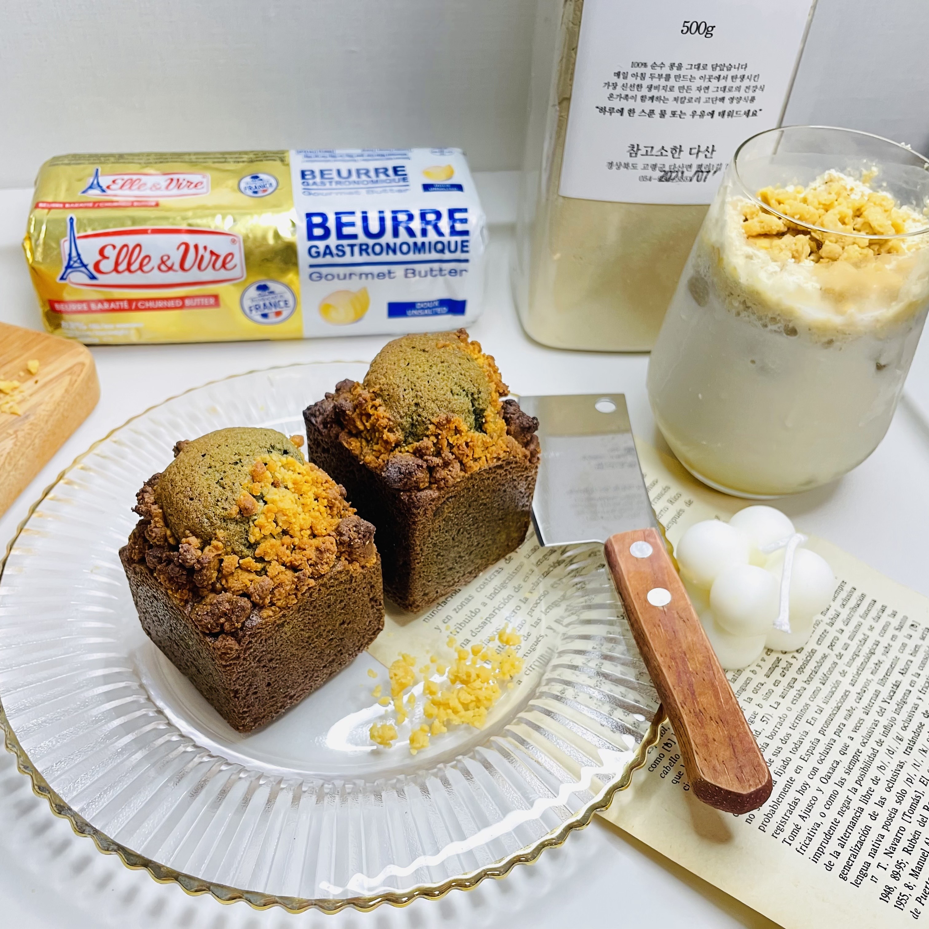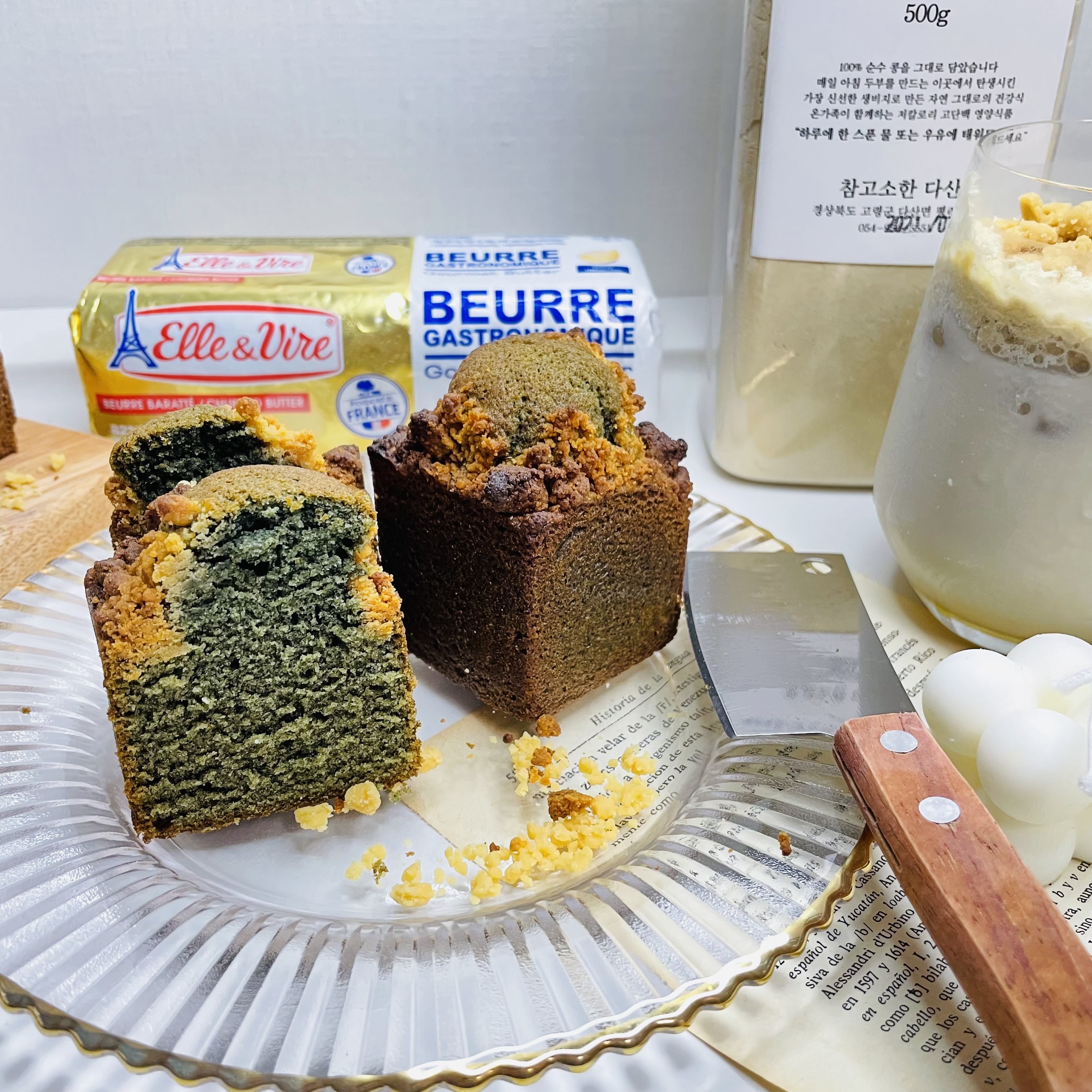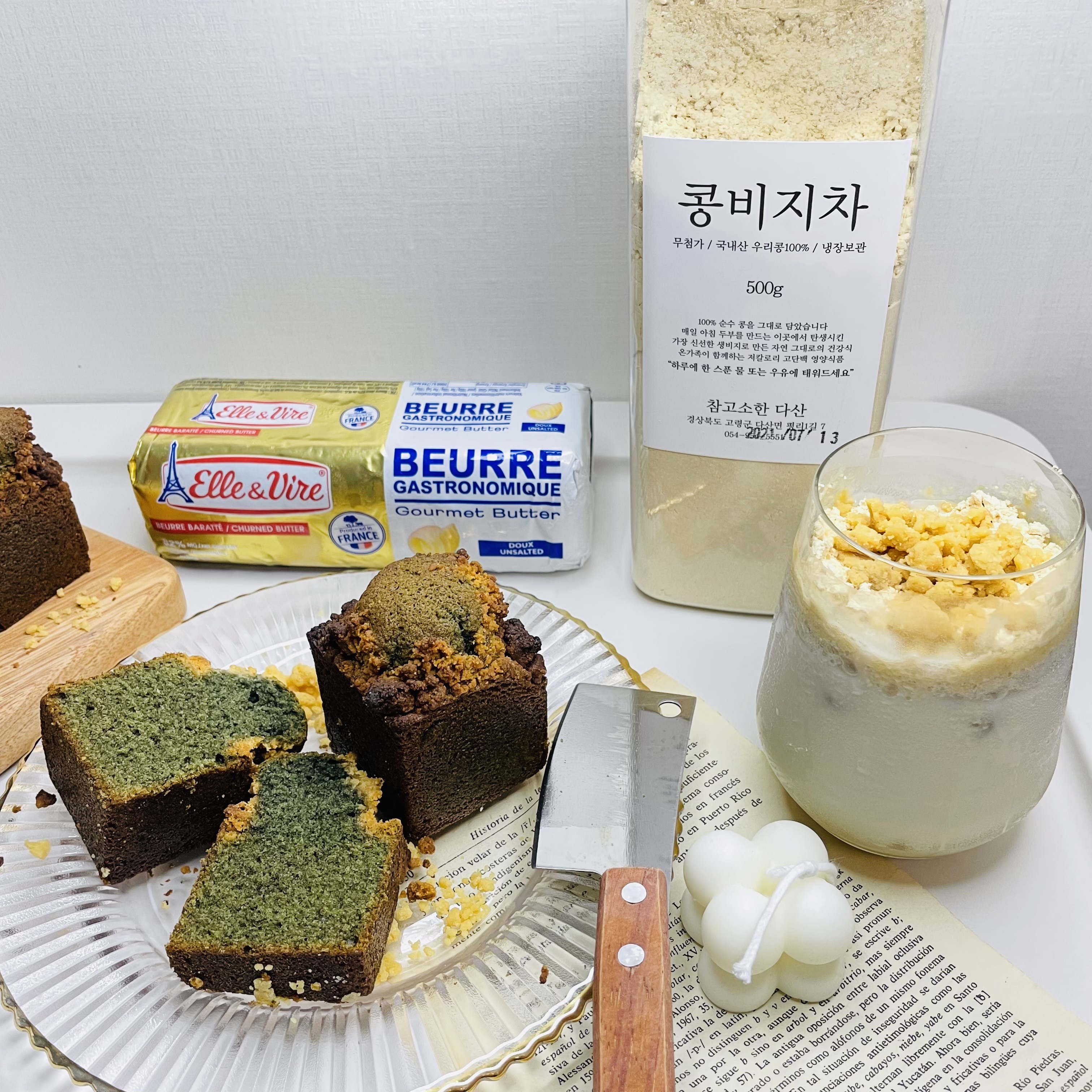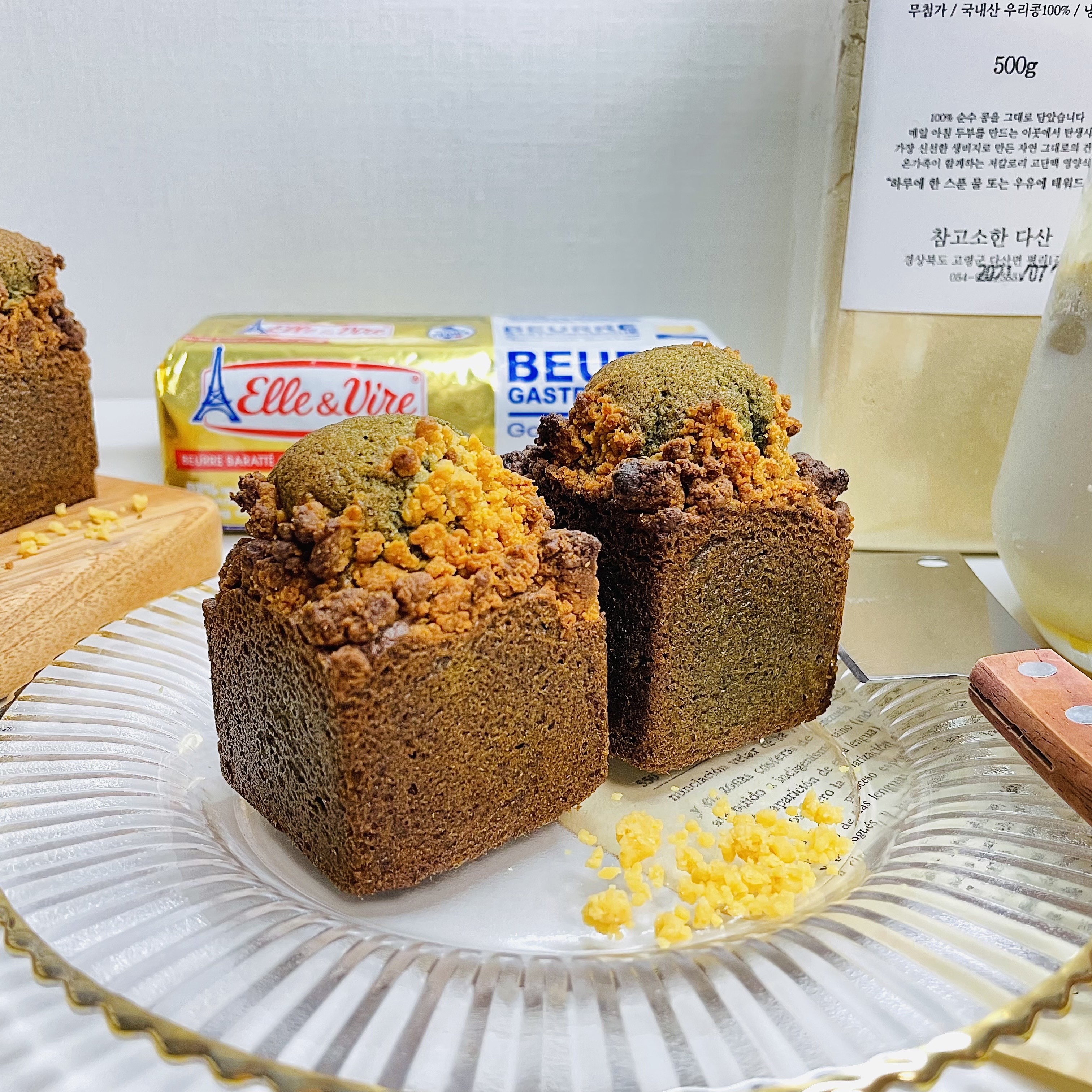 고소한 콩가루 크럼블 올린 쑥파운드케이크