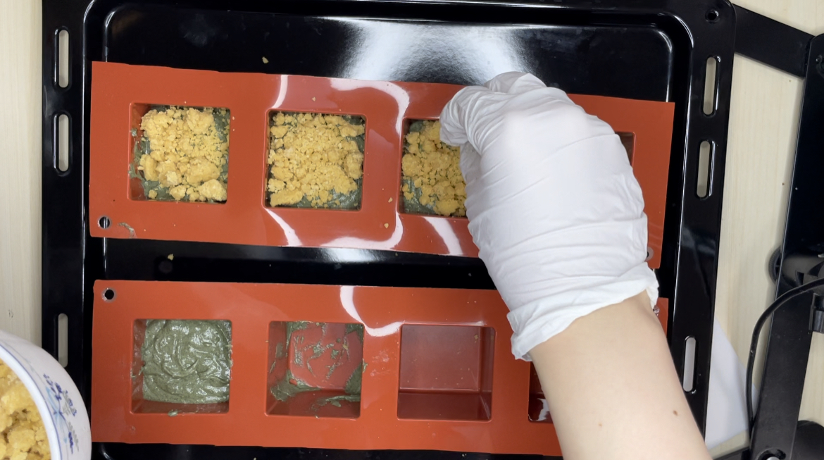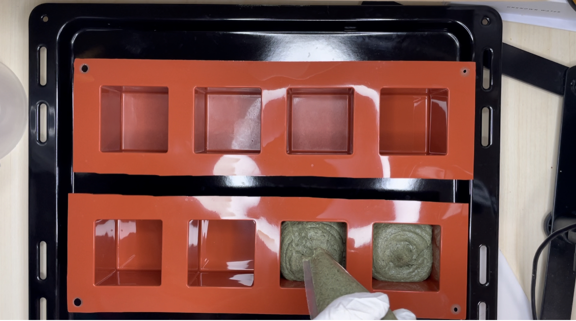 5. 큐브파운드틀에 적당량씩 짜줍니다.