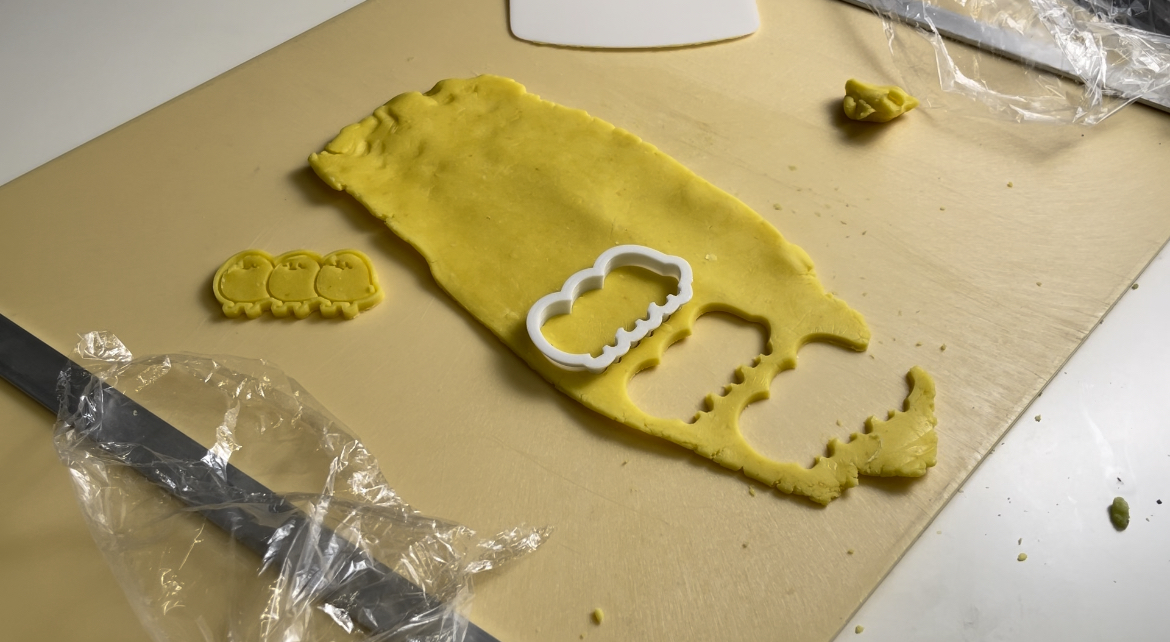 (반죽이 말랑해지지 않게 찬상태유지, 냉동실 왔다갔다 하면서 단단하게 유지시키면서 찍어주세요)