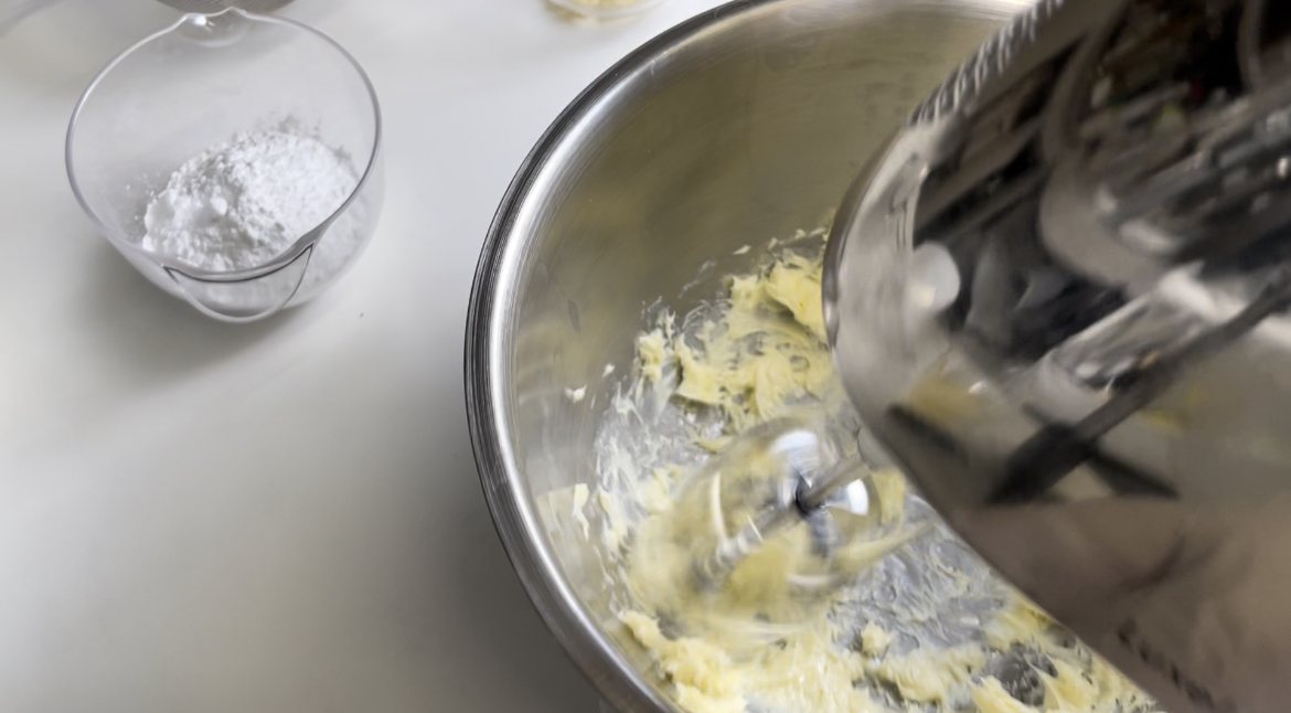 1. 볼에 실온버터를 넣고 핸드믹서로 가볍게 풀어줍니다.