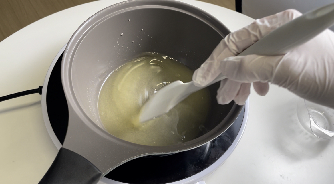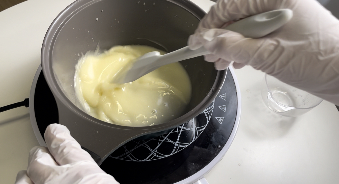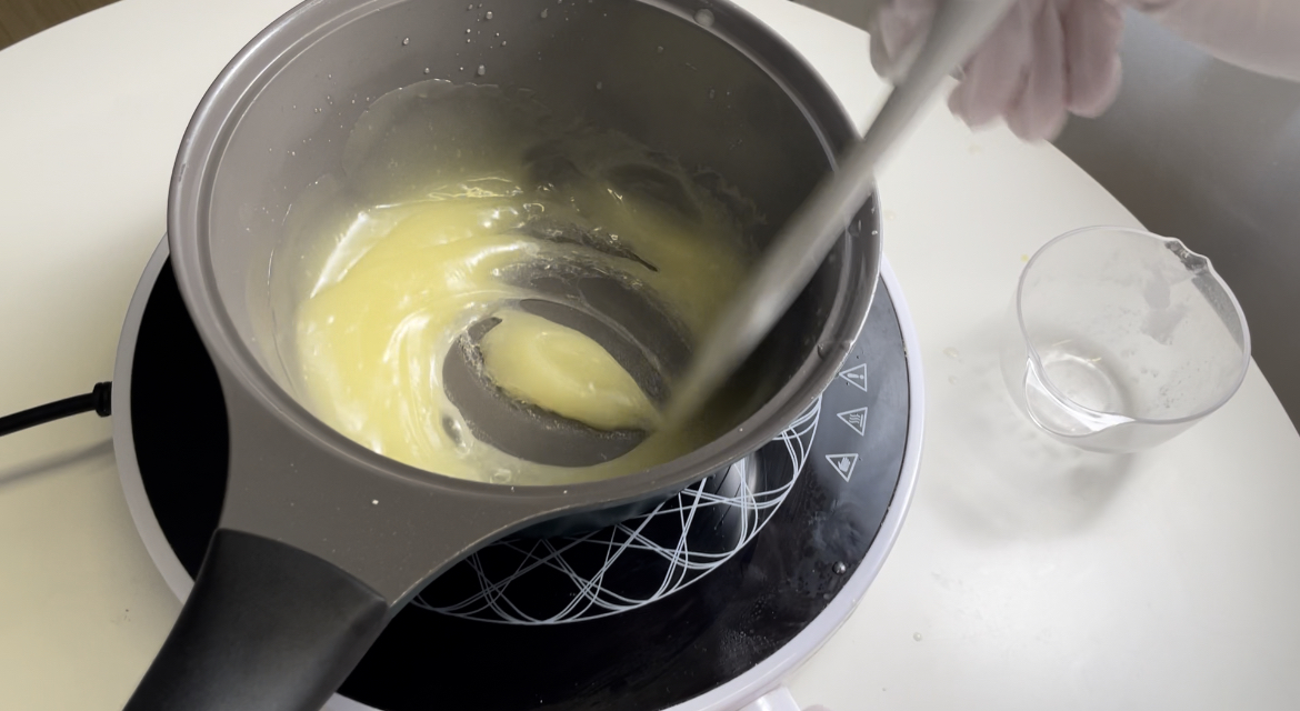 4. 매끄러운 크림상태가 될때까지 주걱으로 잘 저어주면서 가열합니다.