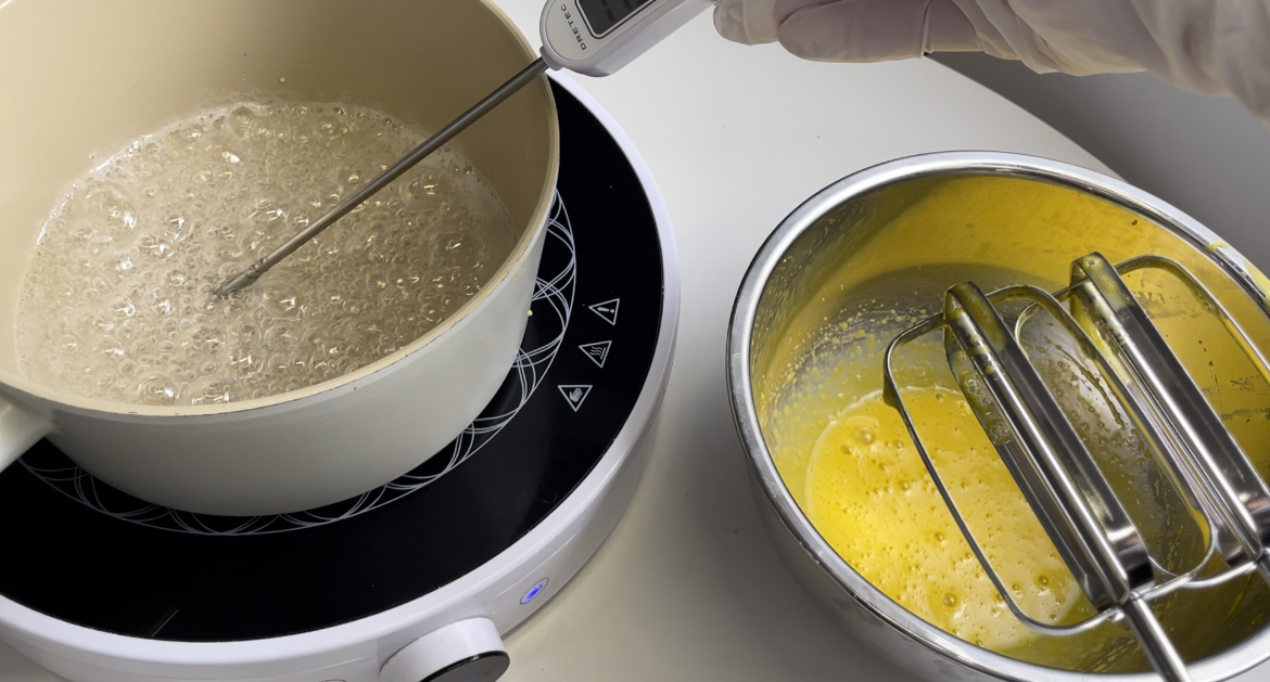 3. 노른자볼에 시럽을 조금씩 부으면서 휘핑해줍니다.